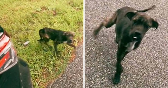 När Stacy möttes hundens blick förstod hon att den ville henne något. Hunden var smal och uppenbart i behov av mat.