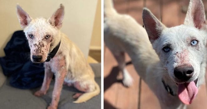 Hon hade ingen päls och var mycket illa tilltufsad. Samtidigt är hon en riktig kämpe som inte ger upp i första taget. Hon verkar också vara en väldigt social hund.