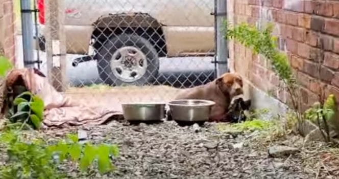 Då får hon ögonkontakt med en kvinna – som tar ett avgörande beslut för vovvens skull.