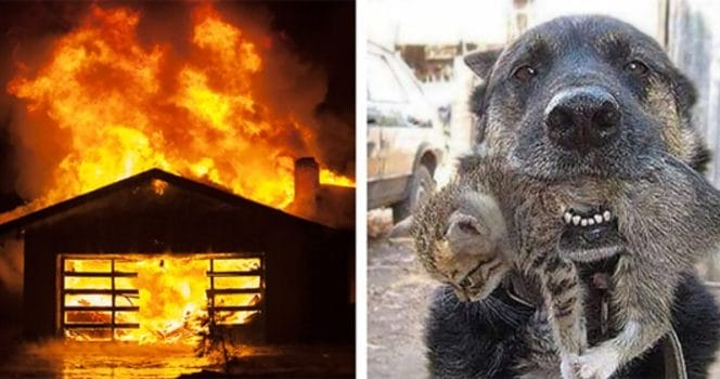 Den hjältemodiga vovven kom nämligen strax utrusande ur byggnaden, med en kattunge som han höll mellan tänderna!