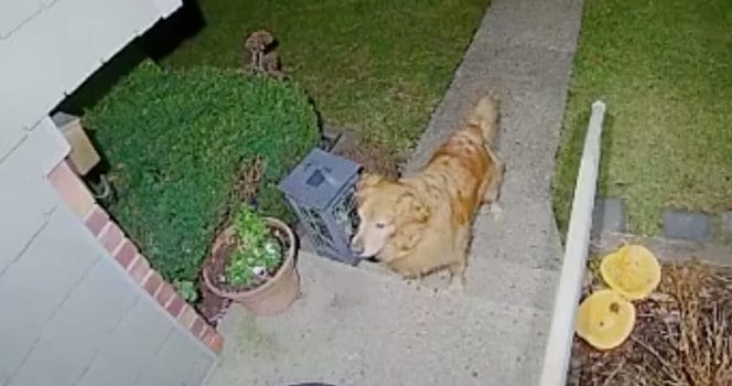 Holly ägare hade en säkerhetskamera utanför dörren, och när hon tittade på den såg hon någon som tålmodigt stod och väntade.
