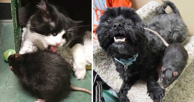 Om man placerar en katt och en råtta i samma rum tänker nog de flesta att det borde sluta i katastrof. Men inte i det här fallet.