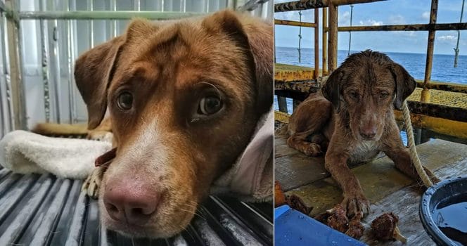 När oljearbetaren Vitisak Payalaw hittade en hund utanför Thailands kust kunde han inte ana den hjärtskärande historien bakom.