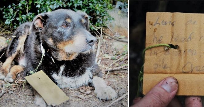 ”Louie är dagens stora hjälpte. Han ledde mig till Maddy som hade fastnat under en hög med grenar. Tack, Rob”, stod det på lappen.