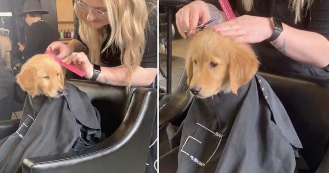 För den här söta valpen handlade det dock om en helt vanlig dag, där han fick följa med sin matte till salongen.