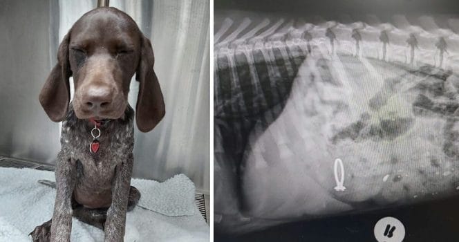 Där förklarade veterinären att det lättaste sättet att se om hunden svalt ringen var att göra ett ultraljud. Och mycket riktigt – efter att ha tittat på bilderna kunde veterinären konstatera att ringen fanns i magen på den stackars hunden.