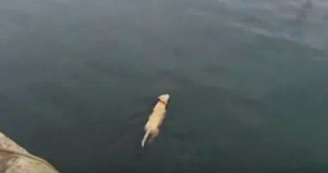 Det var när hans husse tog med honom till hamnen som han plötsligt hoppade raka vägen ut i vattnet – och började simma mot en kompis som ingen kunnat förutspå på förhand.