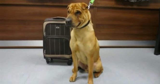 Den lilla väskan intill hunden förbryllade först alla. När de öppnade den fick de svaret: Där fanns en kudde, lite mat, Kais vattenskål och några leksaker. Helt enkelt – Kais egna tillhörigheter.
