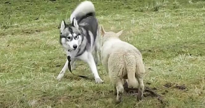 Hundar och lamm är en kombination som man inte ser så ofta. I det här fallet får vi följa med när en husky gästar en gård. Tillsammans med sin ägare tar han några nyfikna kliv ut i hagen – innan han snabbt får sällskap.