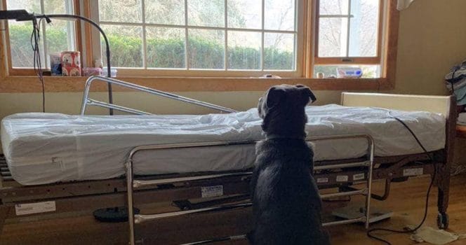 Bilden på den lilla labradoren Moose fick tusentals hjärtan att gå i kras. Han satt bredvid en sjukhussäng och väntade, men ingen kom.
