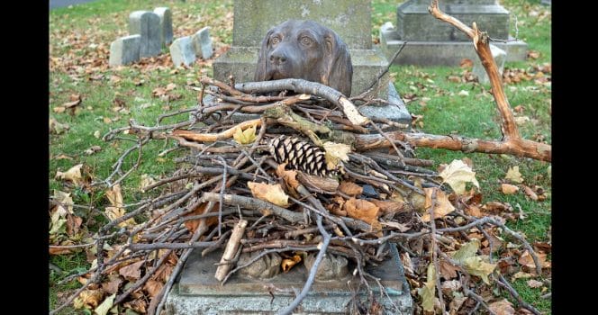 När människor gått förbi gravstenen passar många på att lägga en pinne vid hunden – som en kärleksförklaring. Och det är många som gjort detta genom åren!