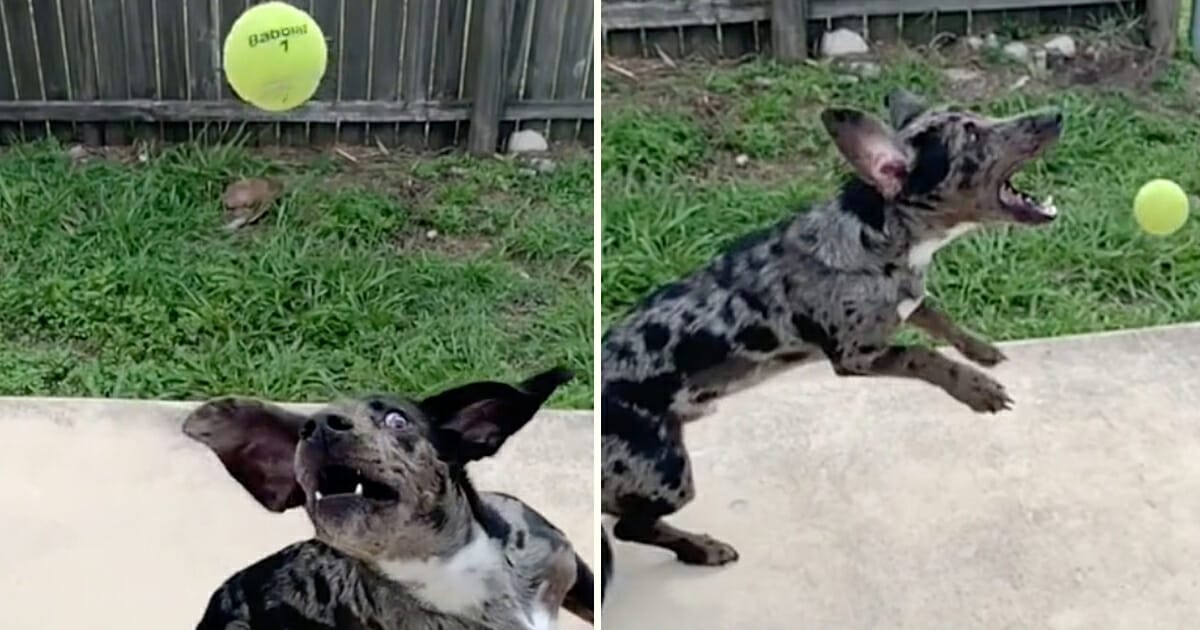 Men Apollo är inte jättebra på det här med att fånga saker. Kaity berättar dock att hunden har en speciell leksak som han alltid fångar med munnen.