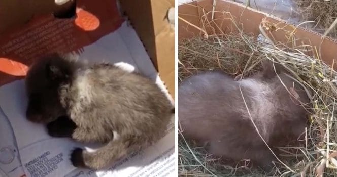 Fluffbollen visade sig nämligen vara en liten björnunge som hamnat på fel plats.