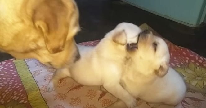 Hundmammans klockrena agerande framför sina älskade hundvalpar har spridits som en löpeld på nätet de senaste åren. Hittills har klippet visats över 18 miljoner gånger och det är inte svårt att förstå varför.
