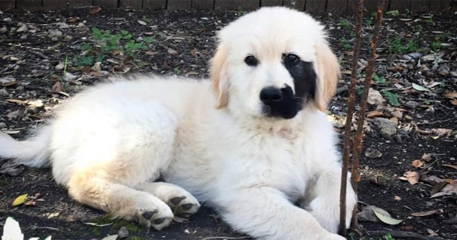 Golden retrievern Enzo Viola föddes med en genetisk mutation som visade sig genom en stor svart fläck över ansiktet.