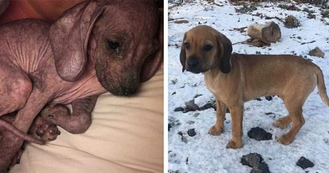 Då vägde Lycka två kilo och var illa däran. Idag är en hon en helt annan hund, efter att ha räddats av Carolina Nymark och hennes familj.