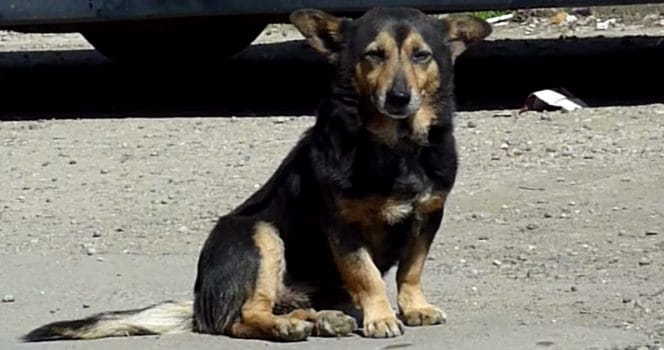 Hunden Buzu bodde i en liten stad i Rumänien. Han var hemlös utan någon familj i närheten, men en snäll person hade i alla fall gjort en litet hus av en pappkartong så han fick skydd för natten.