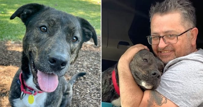 Det här var ögonblicken som han hade väntat på, och hans nya husse var utan tvekan lycklig över att få ta med sig en så underbar hund därifrån.