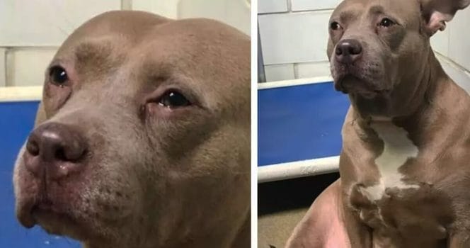 Vad man inte brukar se är hundar som fäller tårar. När Sarah Jennings Sleime såg den här hunden på hundhemmet där hon jobbar kändes det som att hennes hjärta gick av på mitten.