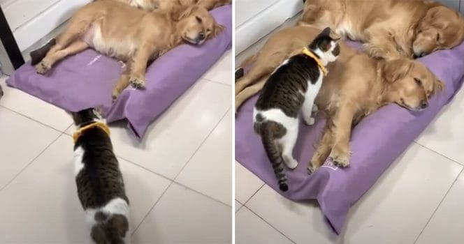 Vi människor pratar ofta om att hundar och katter inte kan vara vänner. Men om och om igen bevisar våra kloka fyrbenta vänner att vi har fel.