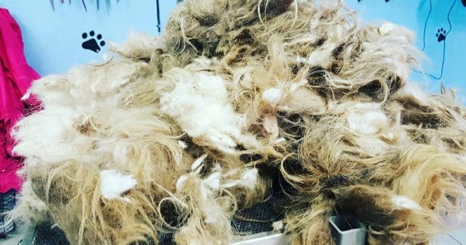 Luckys päls tog timmar att klippa, men trots att det var mitt i natten var Kari fast besluten om att hjälpa den lilla vovven.