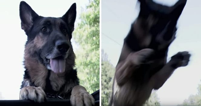 Shannon förklarar att hunden hoppade upp på baksidan av bilen.