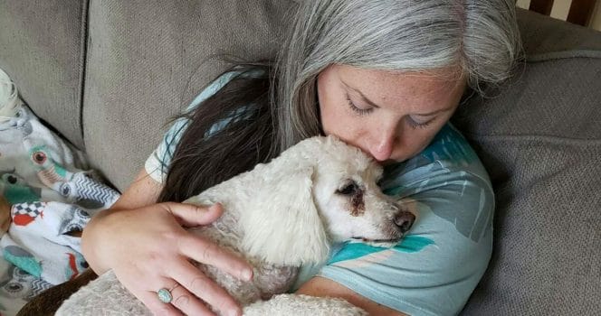 Valerie Reid, en 44-åring från Hermitage, Missouri, USA, inspirerades att ta hand om äldre hundar efter att en personlig upplevelse öppnat hennes ögon för de problem som husdjur möter sent i livet.