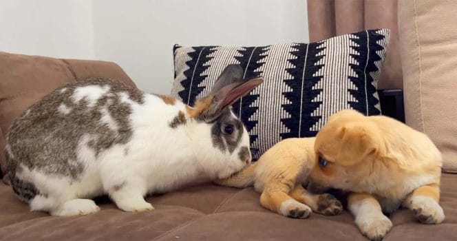 En hundvalp och en kanin blir bästa vänner och det är så underbart!
