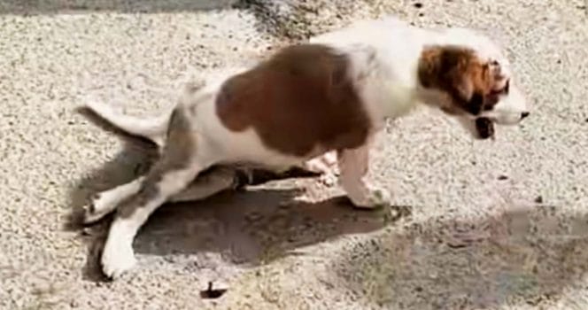 Hunden kunde bara använda två av sina ben.