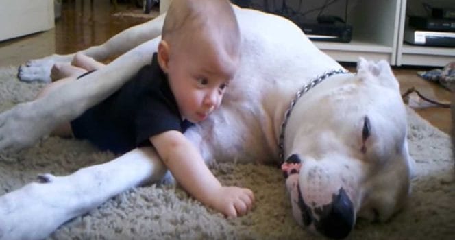 När mamman såg sin lilla baby och familjens hund ligga bredvid varandra på golvet kunde hon inte tro sina ögon. De såg verkligen ut som bästa vänner, men vad som skulle hända sekunden efter hade inte mamman väntat sig.