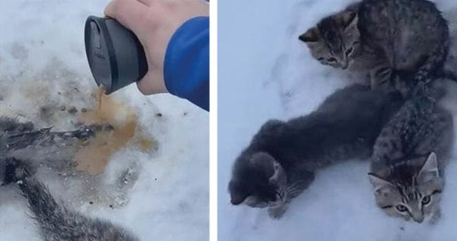 Att tre små kattungar hittades mitt ute i Alberta, Canada, är en lycklig slump. Att de överlevde är dock enbart tack vare en äkta djurväns snilleblixt.