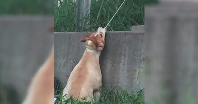 Vid en stolpe stod en ensam hund och vad det såg ut som tuggade på sitt koppel. Men David trodde att någonting var fel – och när han kom fram ringde han snabbt till polisen.