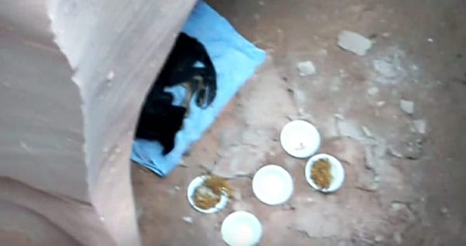 Zak, som filmade hela sin naturupplevelse med hjälp av en kamera, blev så klart mycket upprörd när han hittade hunden. Han förstod nämligen att någon hade övergett den stackars fyrfota varelsen därnere, detta eftersom han hade några tallrikar bredvid sig med lite mat på.