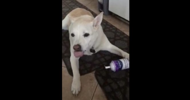 Matte som filmade detta underbara klipp berättar att hon hörde ett ljud från köket och bestämde sig då för att undersöka saken lite närmare. Det var då som denna eftermiddagssugna hund blev tagen på bar gärning…