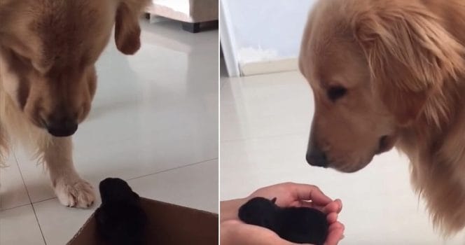 Den här Golden retriever-hunden skulle en dag få en ny familjemedlem, när matte tog med sig en ny hundvalp hem. Den första reaktionen har fått nätet att smälta – och bilderna under den lilla valpens uppväxt är bara för underbara.