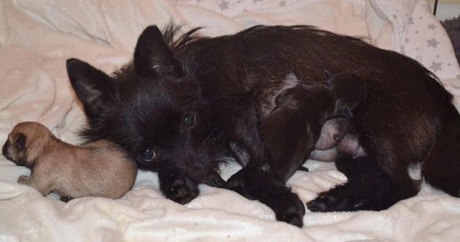 Hundmamman, som är en blandning av chihuahua och terrier, skulle föda valpar för första gången.