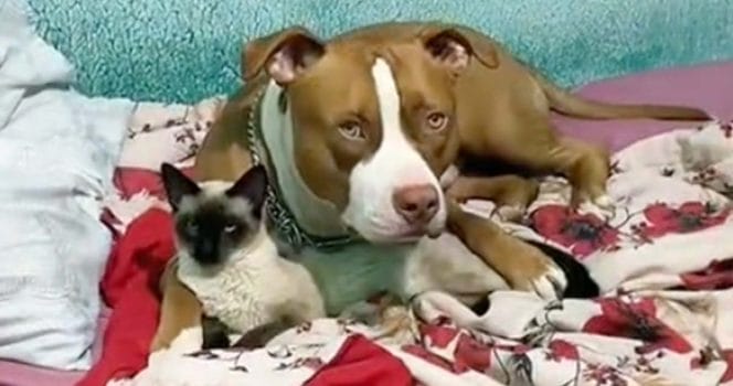Pitbullens stora förändring i beteendet mot katten