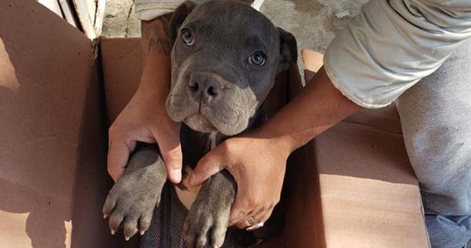 Plötsligt stod en flyttkartong med en hund utanför djurhemmet.