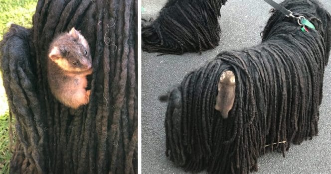 Vi kan bara gissa hur förvånade de blev när de såg att det var en liten söt pungråtta som klängt sig fast på Kato.