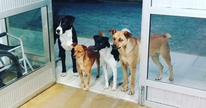 Ana tog ett kort på de fyra hundarna vid sjukhusentrén och la ut på Facebook.