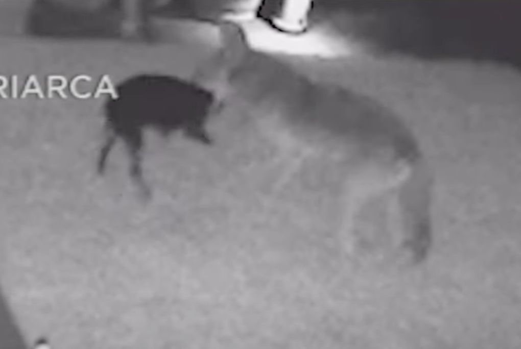 Melissa och Freddy Patriarca, från Huntington Beach, Kalifornien, fick syn på en chockerande scen som fångades upp av deras säkerhetskamera: husdjuret Sadie, en liten Bostonterrier, attackerades plötsligt av en prärievarg.