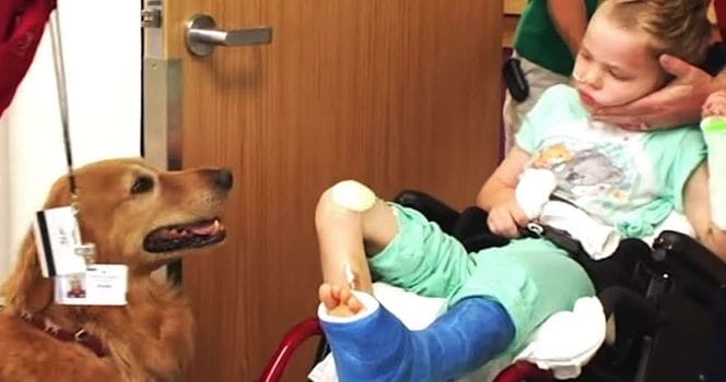 Men så en dag valde familjen att låta Caleb möta en terapihund. De är tränade att ge stöd åt människor genomgått traumatiska upplevelser. Dessa hundar arbetar med patienterna för att öka motivationen och återfå livsgnistan igen.