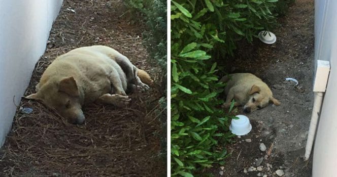 Volontärerna upptäckte då att hundens mage var alldeles uppsvälld, trots att han inte hade haft regelbunden tillgång till varken mat eller vatten. Larry hade även stora sår i pälsen och kunde inte gå ordentligt. Han var rädd och i väldigt dåligt skick.