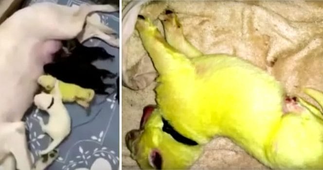 Därför föddes valpen med neongul päls
