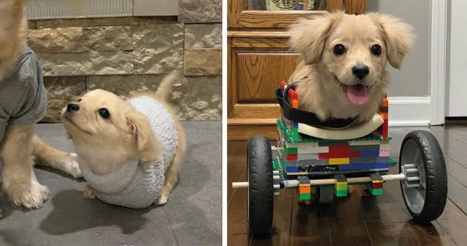 12-åring byggde rullstol åt valpen