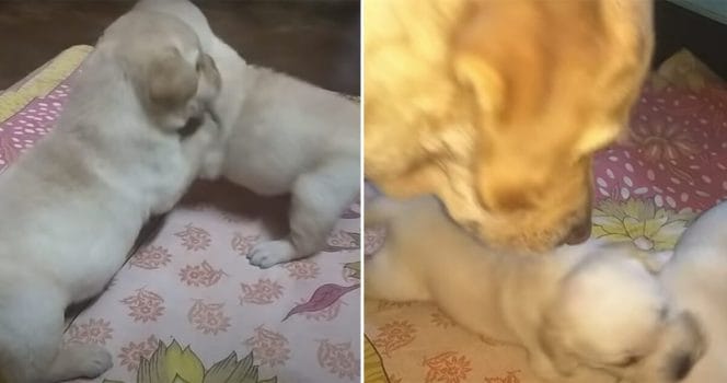 De här två små valparna Lucy och Milo bråkade hela dagarna och deras mamma var måttligt road över att de hela tiden skulle brottas och leva loppan.