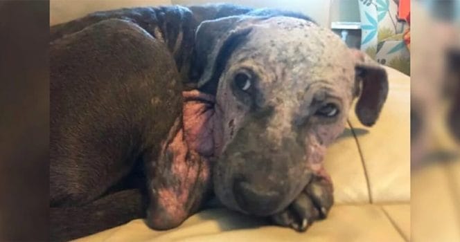När en person gick fram för att kolla vad det var fick vederbörande en riktig chock. Där i låg en stackars hundvalp, helt vanvårdad och rejält skadad.