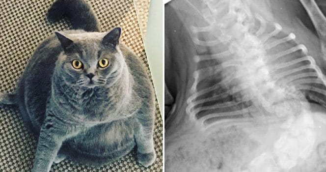 När de tog sig till veterinären visade det sig att katten hade en krokig ryggrad. Detta gör att hon inte växer på längden på samma sätt som andra katter, utan i stället på bredden, enligt The Dodo.