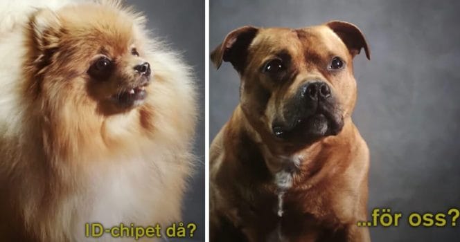 – Chippa katten – för katten!, ”säger” en hund i inslaget.