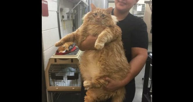 Den femåriga katten bodde med sin matte, men hon klarade inte längre av att ta hand om sin älskade fyrfota vän då hon drabbades av demens. Därför fick katten komma till djurhemmet. Det var den knubbigaste katt de sett.